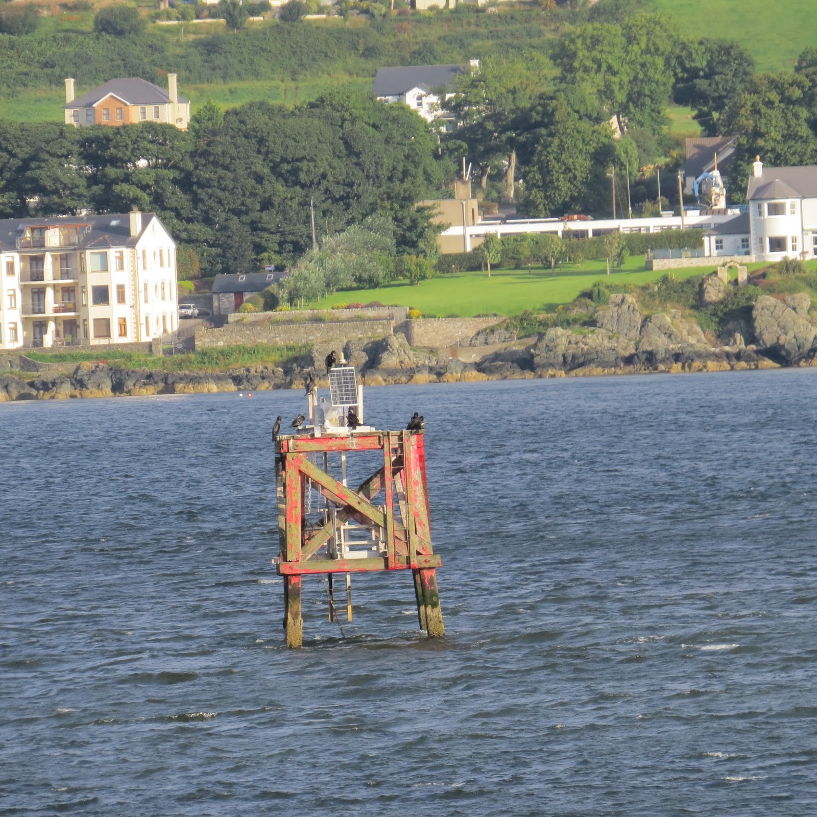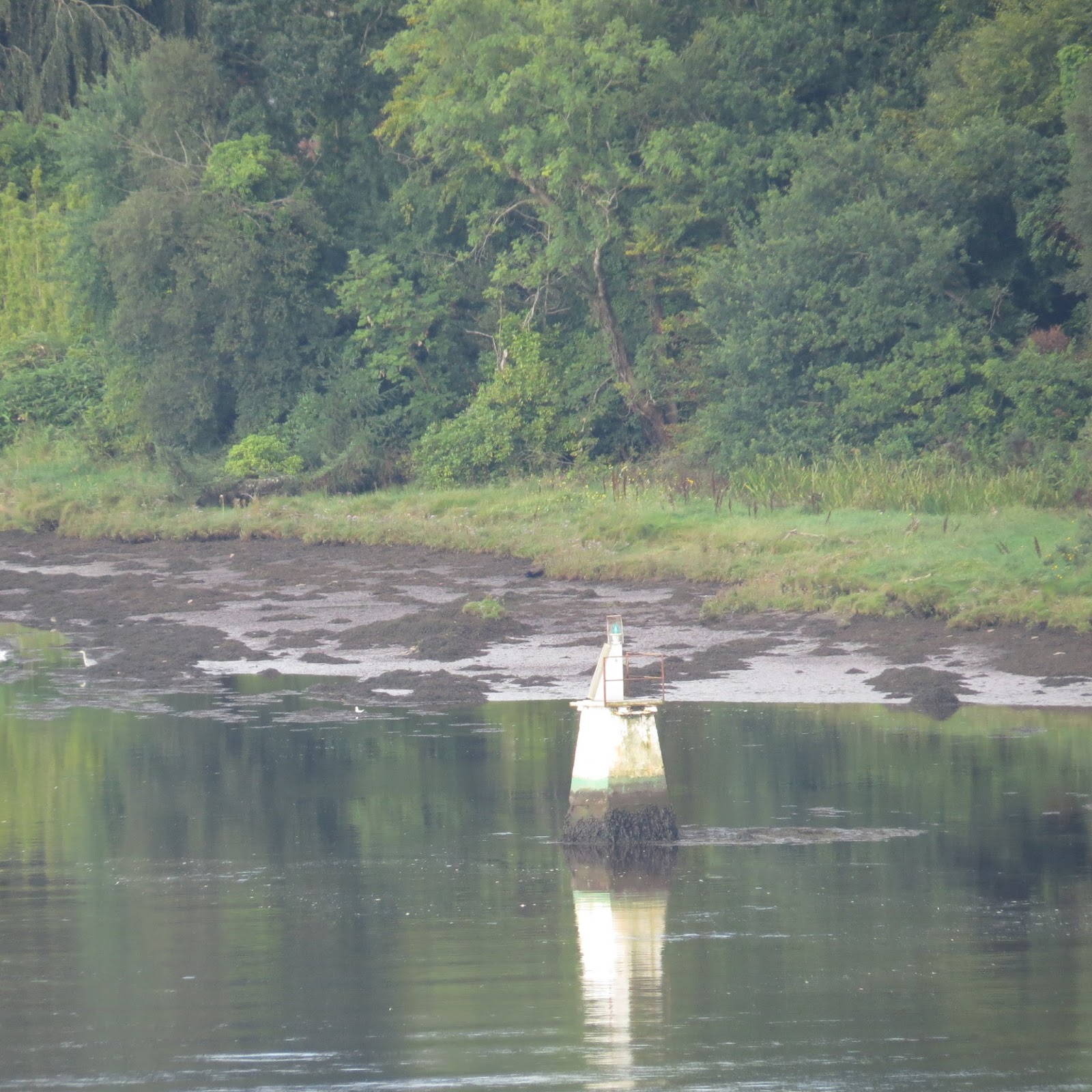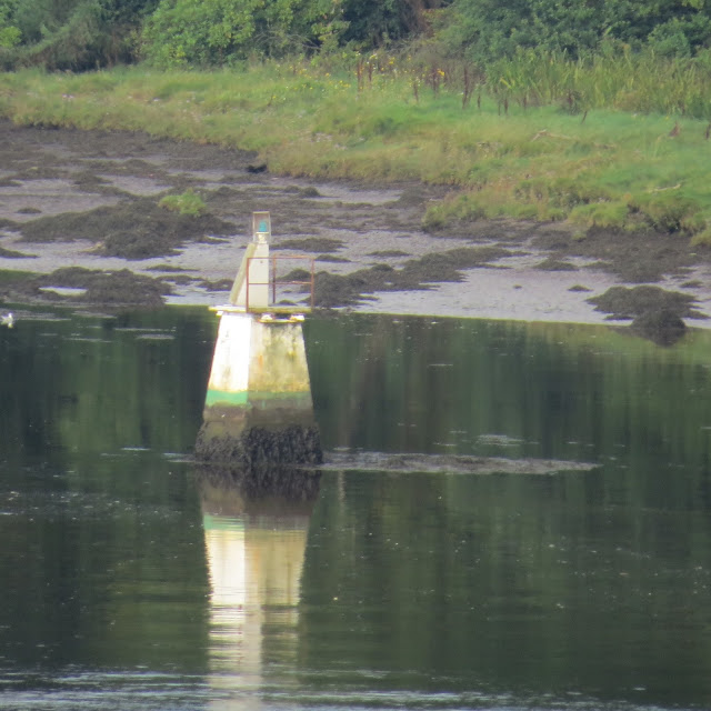 Culmore Point Light beacon is a green round tower with a black base that stands at the entrance to Culmore Bay and the River Foyle. A light was established here in 1848 and the current structure dates from the 1920s. And it is one of the few lighthouses I have come across that is conspicuously marked with its night, in case it should be misplaced, I assume. It consists of a 23 ft conical tower painted white with a green base and stands next to Culmore Fort. One would imagine that local residents 50 years ago would have found the spot idyllic but the aesthetic beauty of the spot has been somewhat marred by the modern and necessary but rather ugly Londonderry Docks across the river and a bloody great pylon .